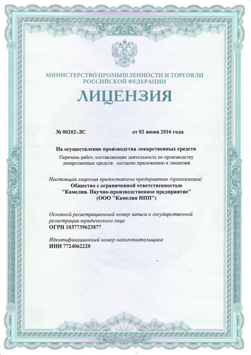 Научно-производственное предприятие "Камелия НПП" 25 лет работает на российском фармацевтическом рынке, являясь производителем лекарственных препаратов, биологически активных добавок, косметических масел. Вторым направлением нашей деятельности является производство сырья для косметической промышленности, а также сухих экстрактов и субстанций для фармацевтической промышленности.